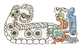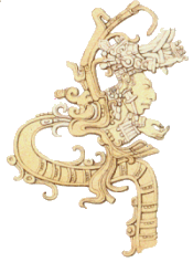 de la "tête et volute de serpent à plumes", de "masques grotesques", d'"oiseau-serpent", etc.